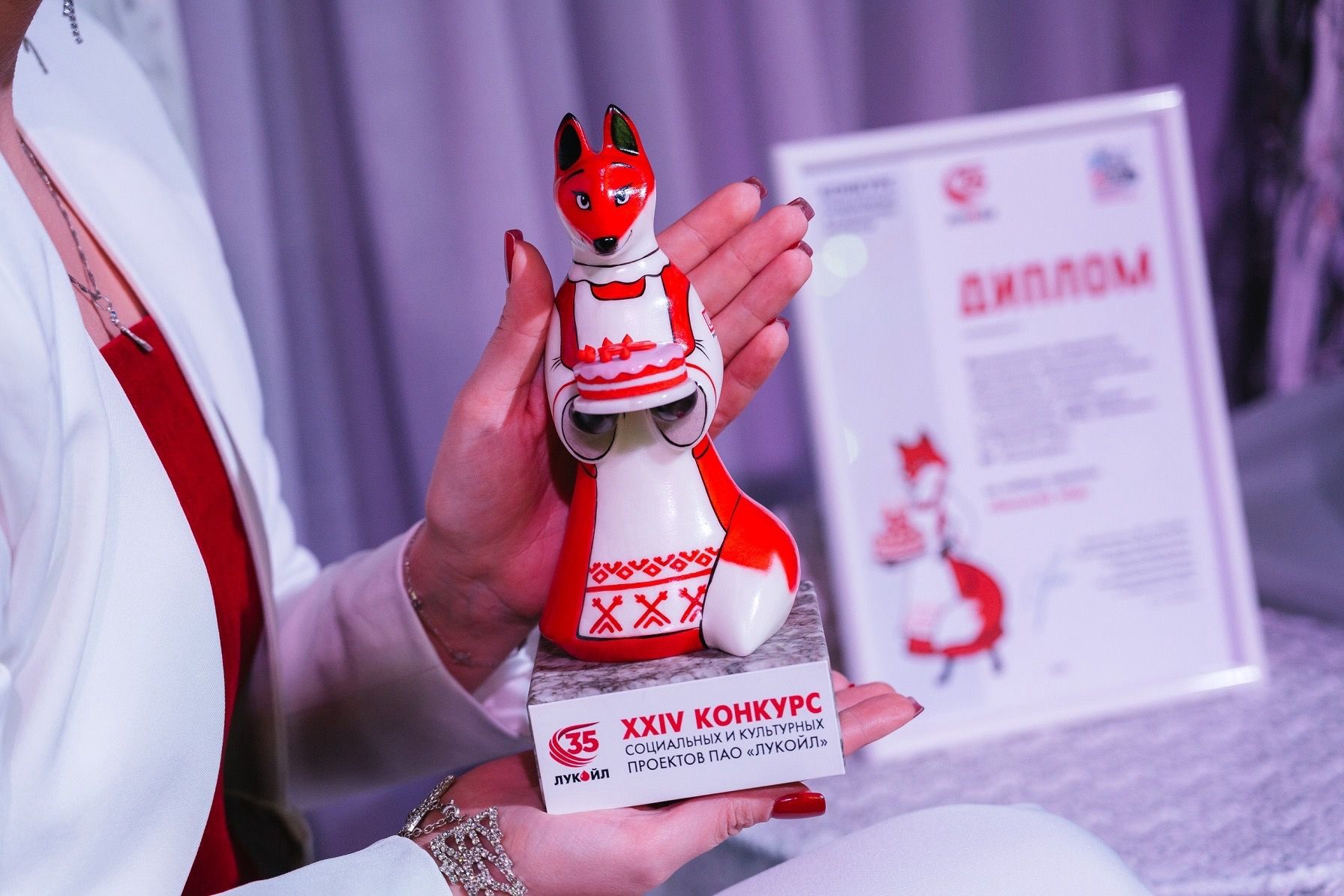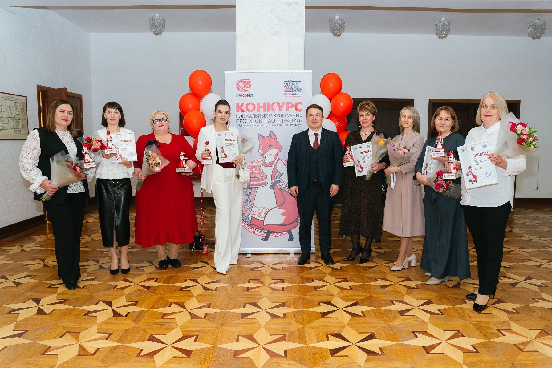 В этот же день в Усинском Дворце культуры состоялось вручение «Рубиновых Лис» – статуэток талисмана грантового конкурса нефтяников, которыми поощряются авторы лучших реализованных проектов. По итогам предыдущего, XXIV Конкурса социальных и культурных проектов компании «ЛУКОЙЛ», такими стали 16 проектов из Республики Коми. Среди них и два проекта из Ухты – восстановление экспозиции «Малая Третьяковка» в Центре творчества имени Г.А. Карчевского и создание центра активности «СпортКарик» в детском саду №32.