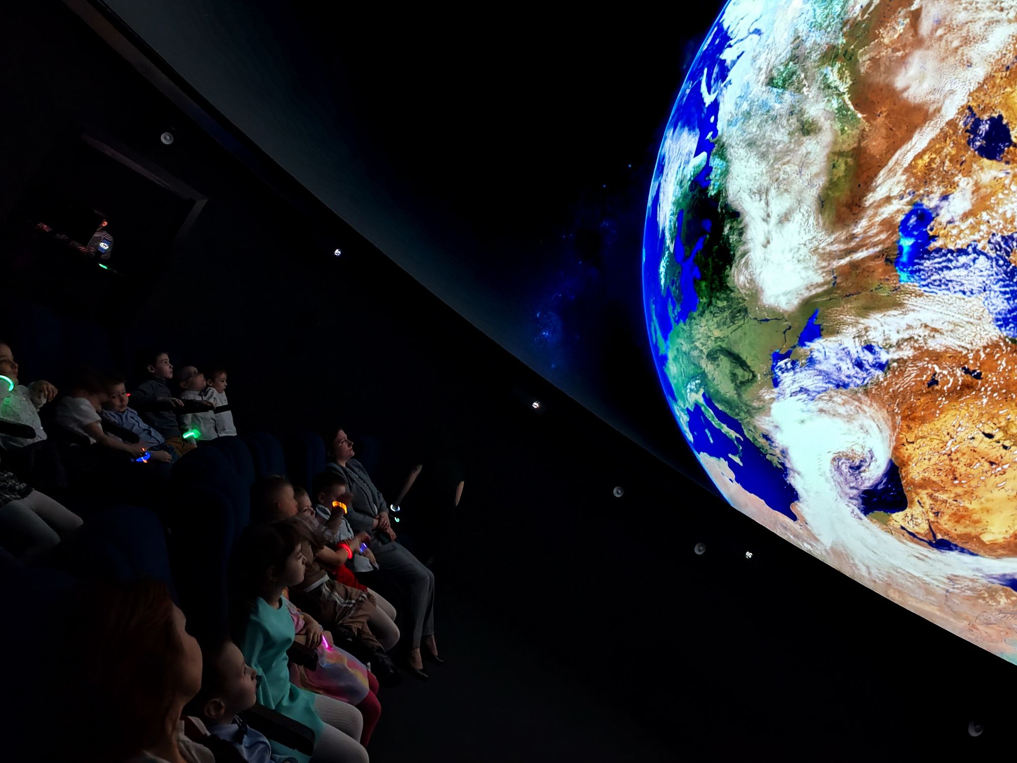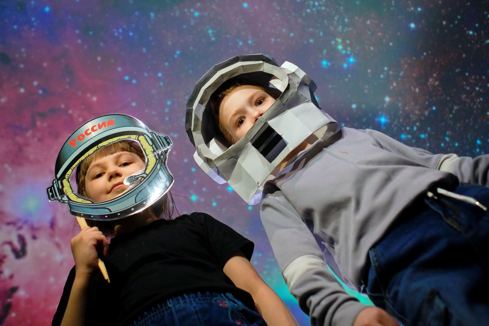 Дошкольники смогли прикоснуться к тайнам мироздания – сотрудники Центра творчества подготовили интерактивный фильм о создании планеты Земля, возникновении океанов и континентов, местах проживания различных животных и птиц. Дети с восторгом отвечали на вопросы виртуального гида, а после просмотра приняли участие в «Звездной разминке» - изображали ракеты и космонавтов. В качестве реквизита для небольшой фотосессии примерили шлем космонавта – удивительную поделку создали родители одного из воспитанников детского сада - Артур и Екатерина Сафарян.