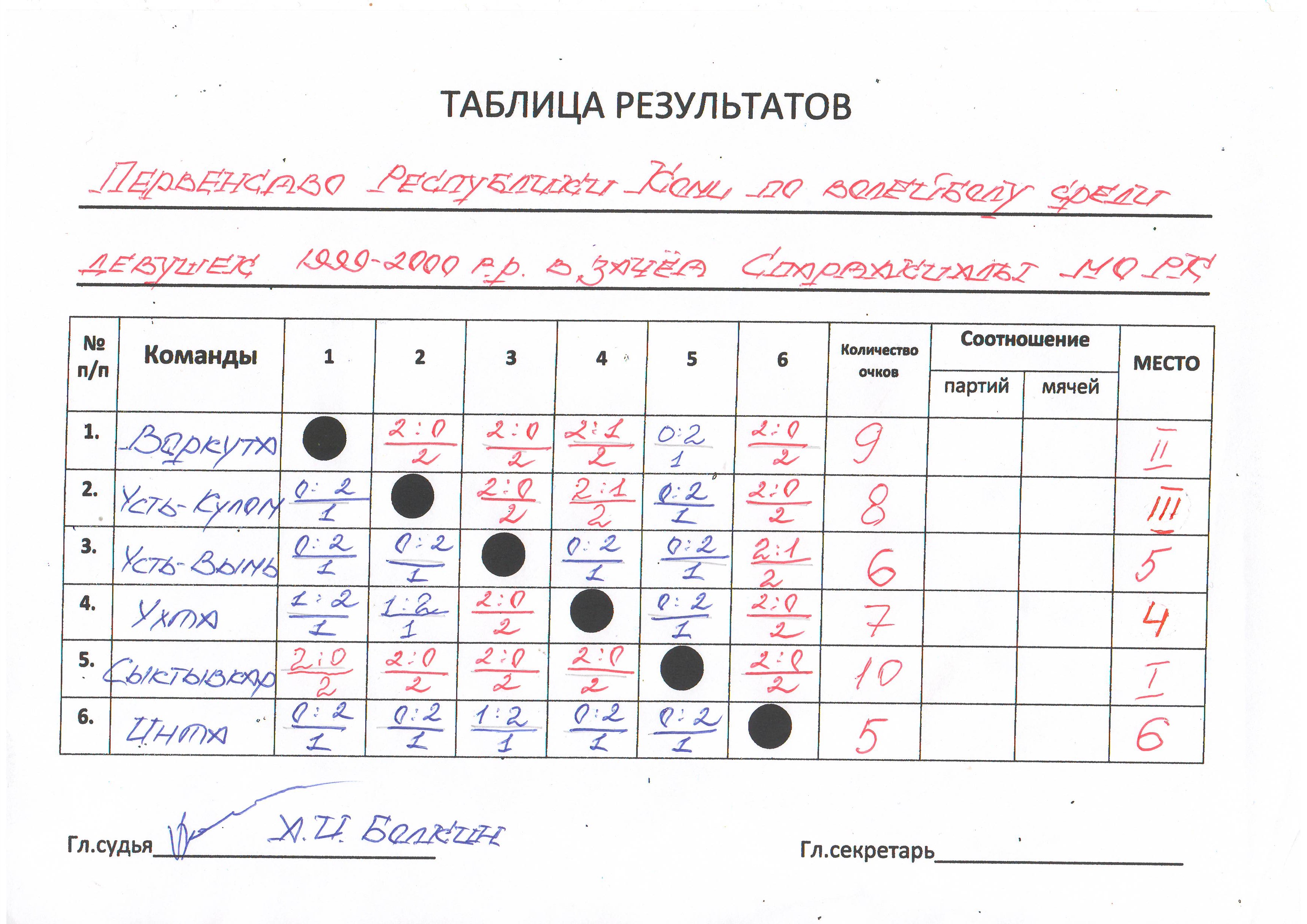 По итогам 4 дней игр команда девушек г.Ухты заняла 4 место, тренер команды Болкин Александр Иванович, на 3 месте команда Усть-Кулома, тренер команды Сидоренко Татьяна Ивановна, на 2 месте команда г. Воркуты, тренер команды Вяткина Анна Николаевна, победу в соревнованиях среди команд девушек одержала сборная г.Сыктывкара, тренер команды Круцкевич Татьяна Дмитриевна.